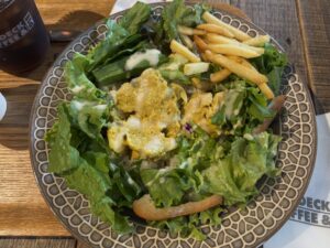 セットのサイドはサラダにしましたが、プラス100円でポテトに変更も可能。